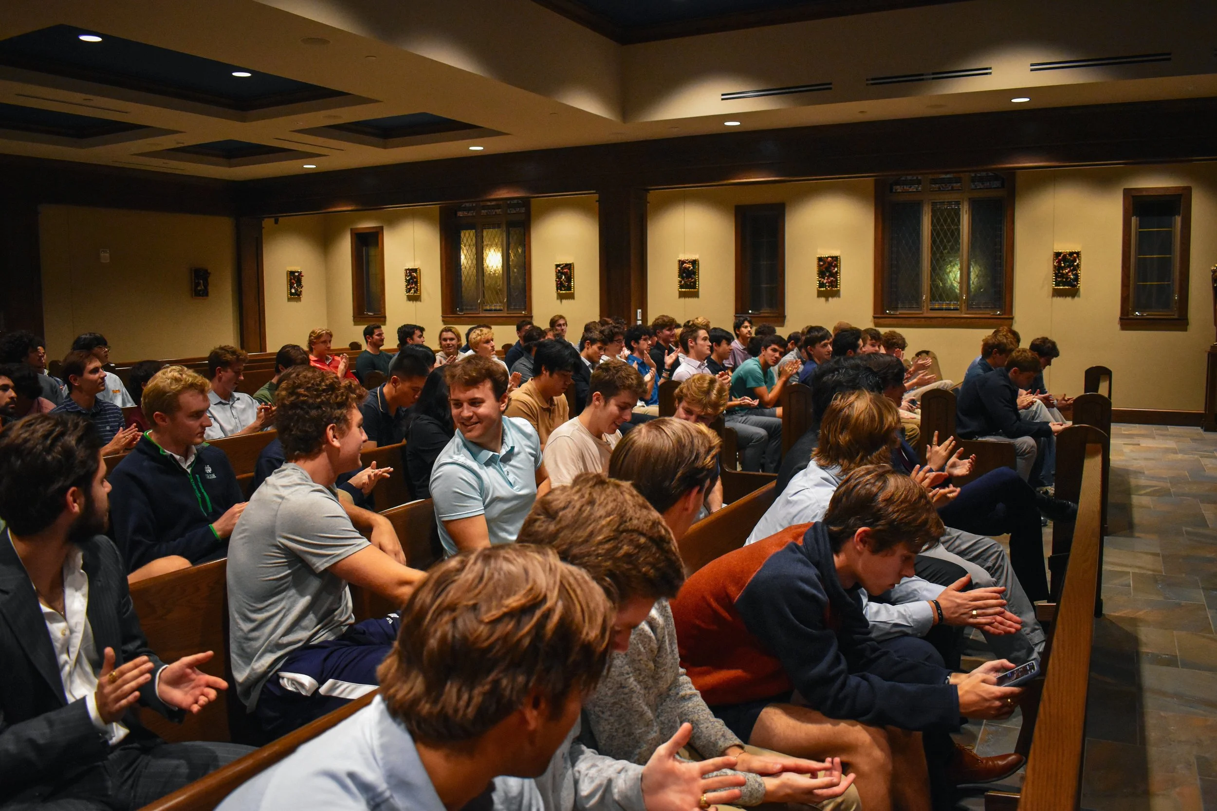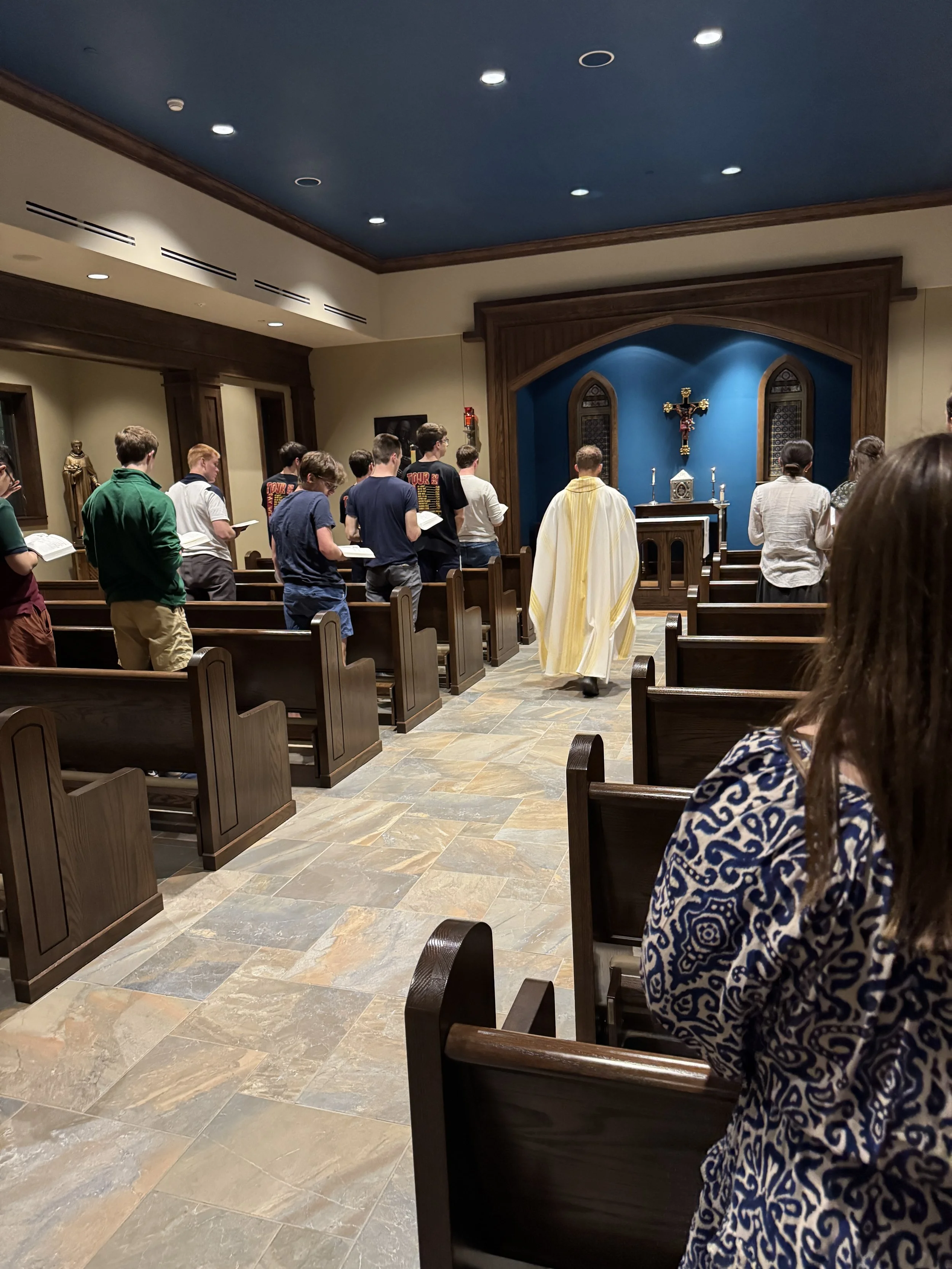 Established in 2023 by freshman Matthew Scherber, BBB Mass has quickly grown from a dedicated group of Baumer residents to a popular event that attracts men and women from across campus. Enjoy a beautiful Wednesday night Mass celebrated by Fr. Pete, and hang around afterwards for warm, freshly baked banana bread!