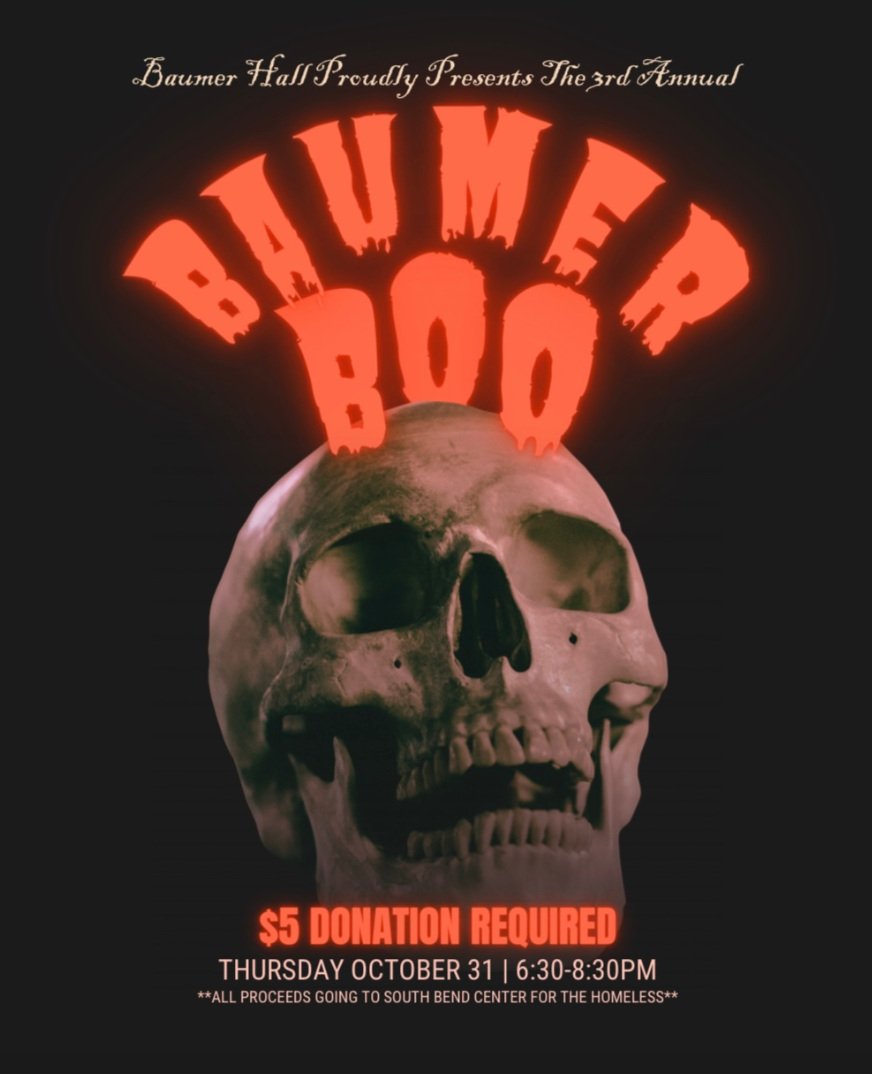 Searching for a scare on a South Bend Halloween night? Look no further than Baumer Hall. The bucs transform the basement and a residential floor into a full-fledged haunted house. Spooky decorations, blacked-out lights, planned “scare room” acts, and of course the many bucs that volunteer as scarers all make Baumer Boo THE place to be on Halloween night. We can’t guarantee that there aren’t real ghosts in Baumer these nights; some say they leave feeling an extra presence with them!