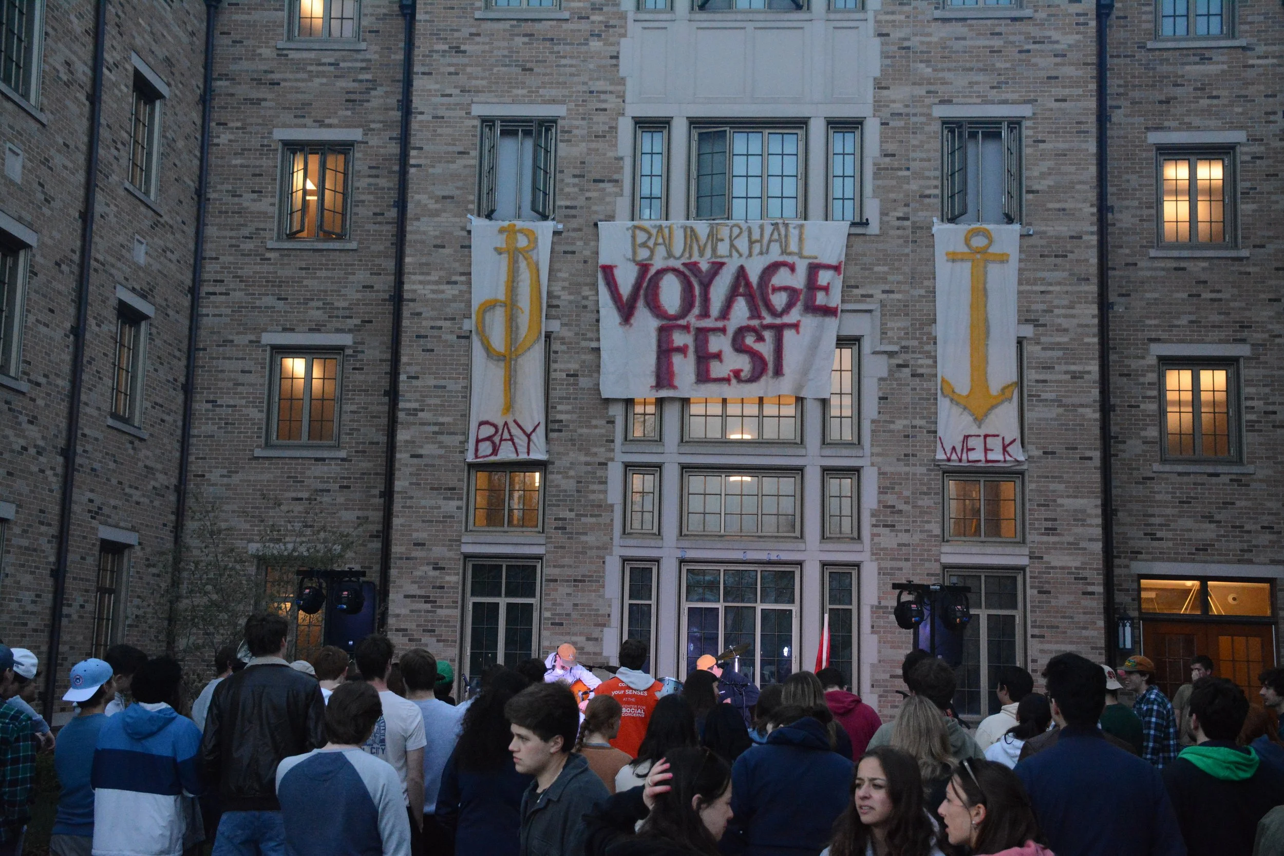 The campus community was calling for a way to celebrate and acknowledge student bands. Baumer answered and created the music festival VoyageFest. To cap off Bay Week each year, student bands across campus (with special slots filled by Baumer residents, including former VPs Shane Wall and Pat Feit) perform over several hours under the lights in the Bay. It’s a special event that’s quickly becoming a dorm and campus favorite. SCAB!